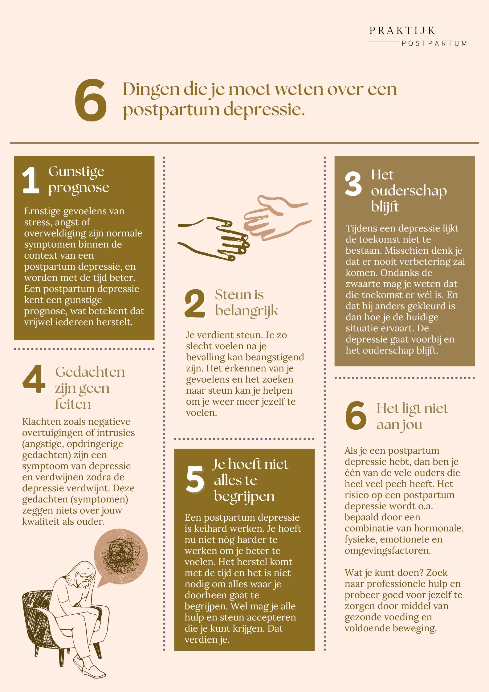 Een postpartum depressie is een behandelbare aandoening. Door te praten over jouw situatie, kun je voorkomen dat je klachten verergeren, en een spoedig en gezond herstel bevorderen.